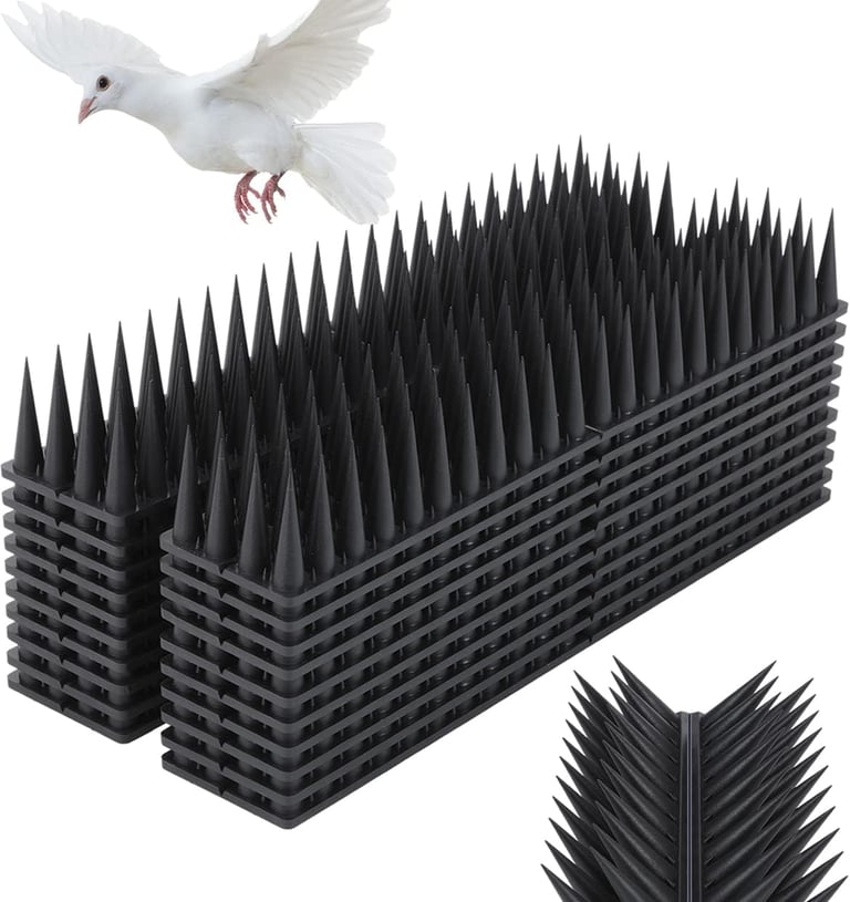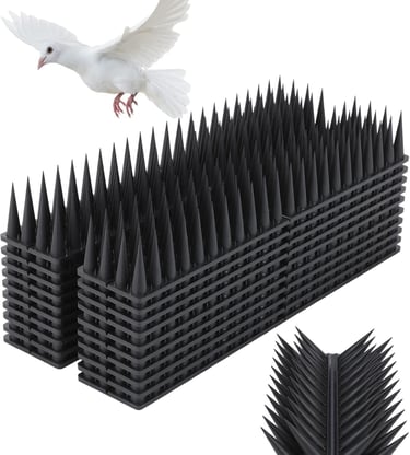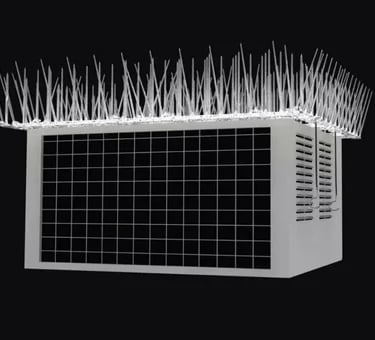 Strong and durable bird spikes to protect rooftops, railings, and AC units from birds.